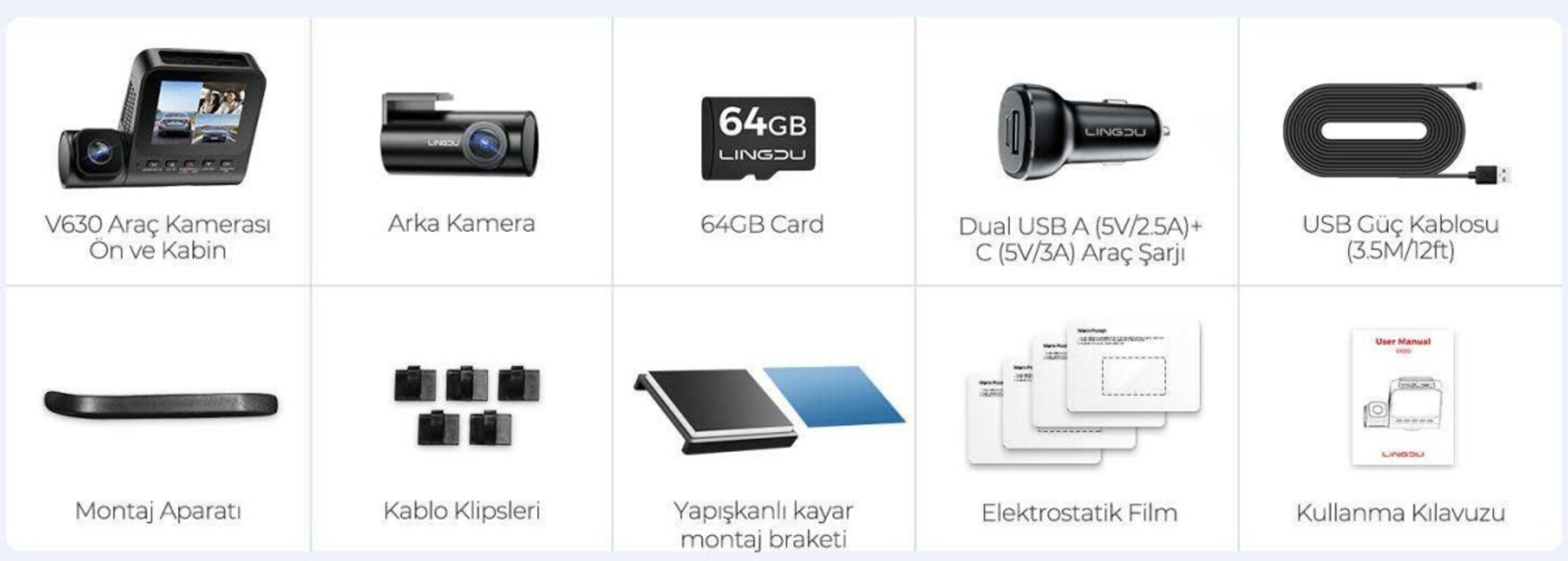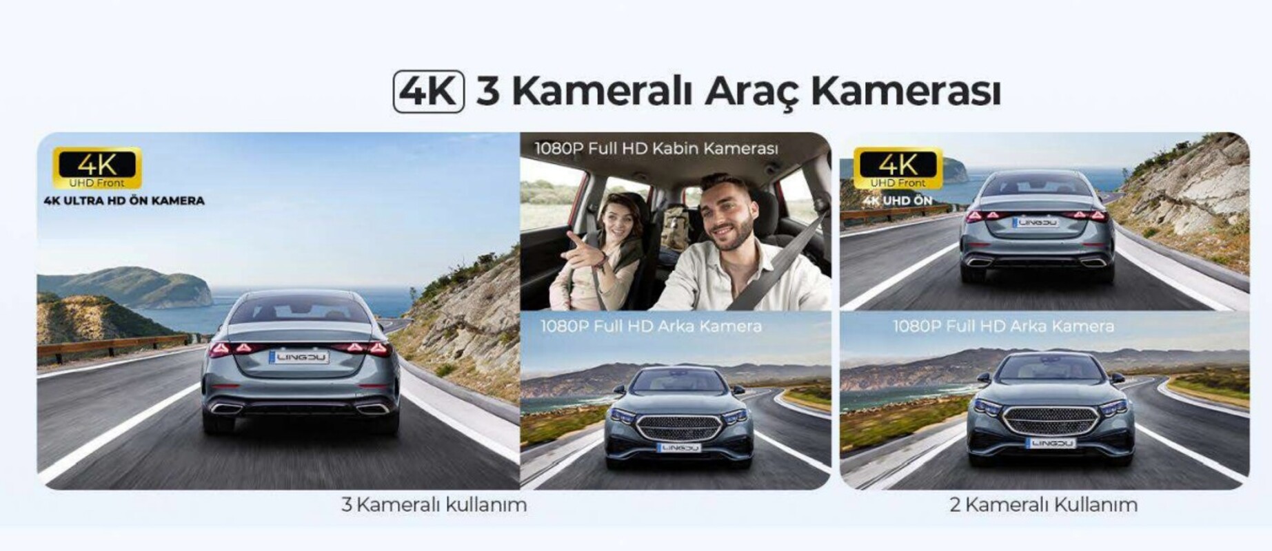 Lingdu V630 4K 3 Kameralı Akıllı Araç Kamerası